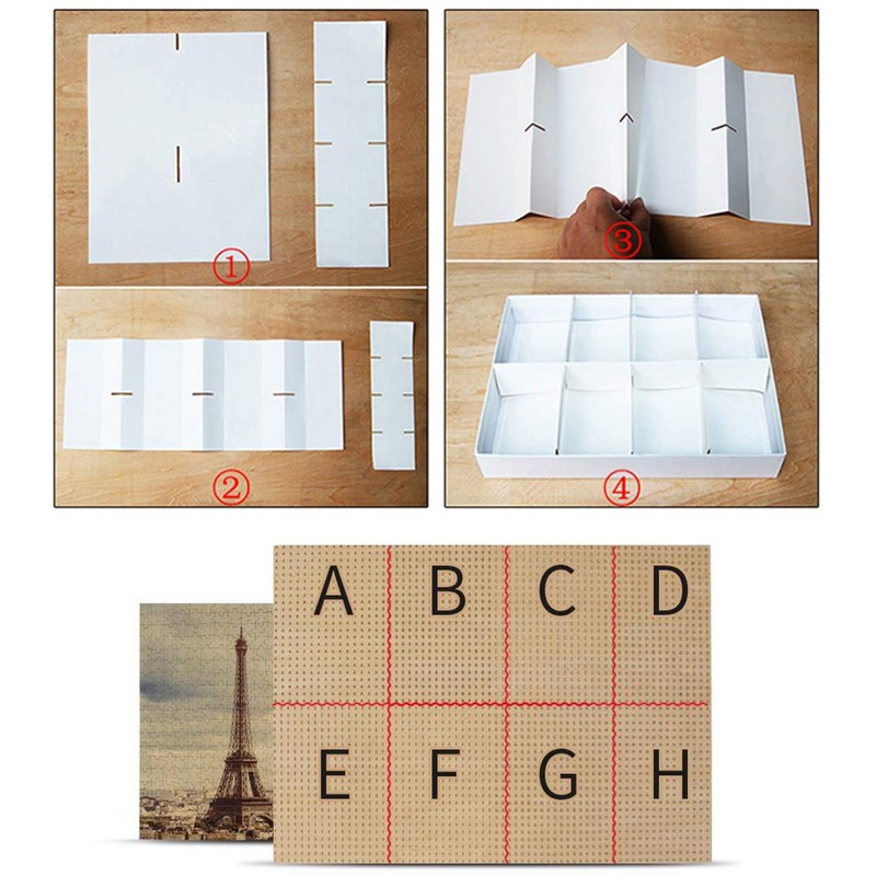 • There is a reference picture on puzzle's box.Each puzzle has a special mark on back and a partition board to partition.