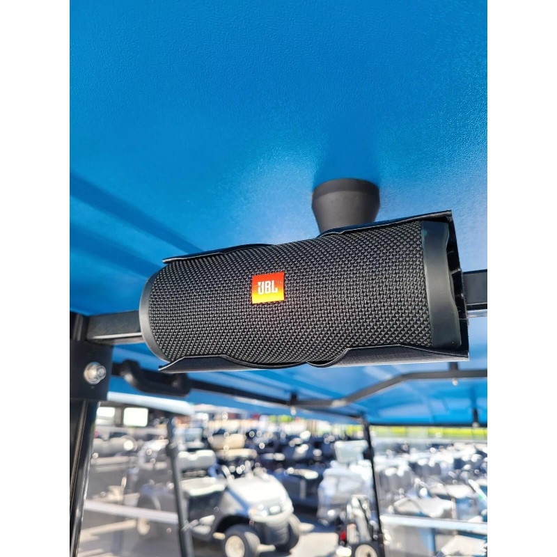 Designed specifically for the ICON golf cart roof struts, this "Front and Center" speaker holder mounts snugly to your roof bar. The design has been tested to work with both the JBL Flip 4 and the JBL Flip 5 . The design accommodates multiple mounting locations on your ICON roof and NOW ANY golf cart roof (with mountable bar space)- and provides professional soundbar looks at JBL-Flip-4-I-Already-Own prices.