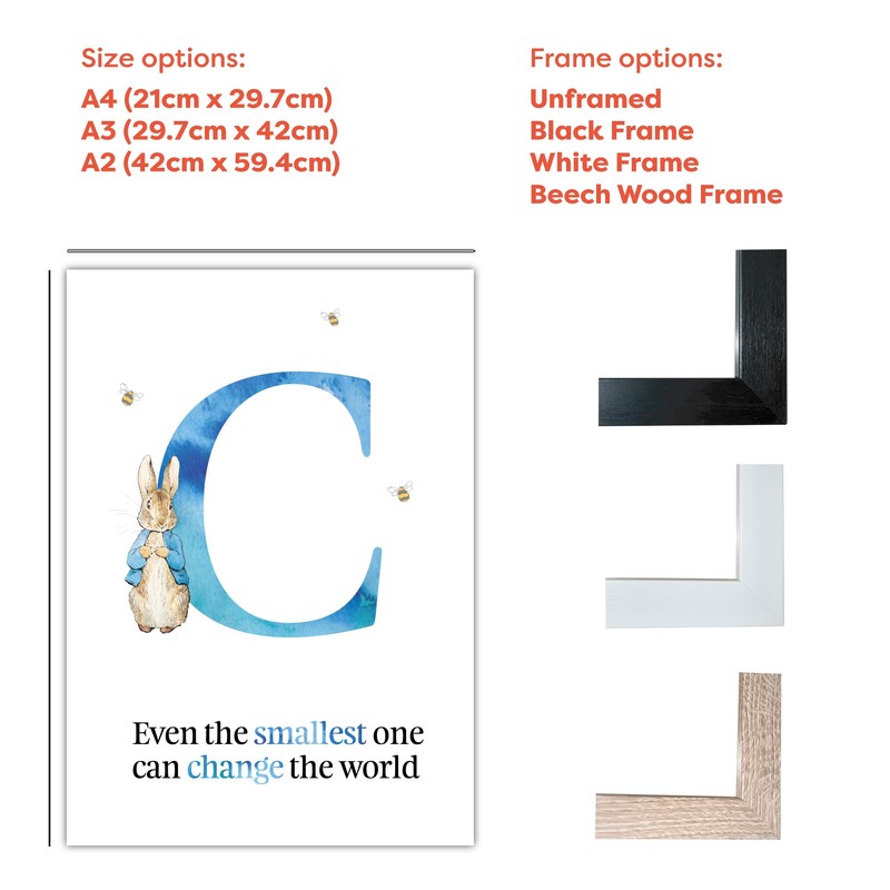 Peter Rabbit Print - Even The Smallest Quote Blue Letter Personalised Nursery...