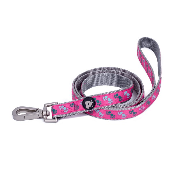 Petface Paws Print Dog Lead, Medium, Cerise/Grey