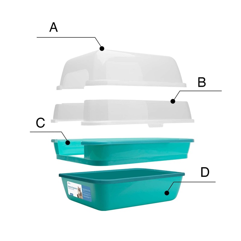 Petfamily Space Capsule Extra Large Litter Box, Grey (Teal), 21.60 x 17.80 x 17.30 in, this jumbo hooded litter box is perfect for big cat or multiple cats' family. It also allows cat feel more comfortable when they are doing their business and out of sight. Flip hood and bottom base both can serve as litter pan for cats from kitten to adult separately. High back Space Capsule design leave large room for cats turn around in it and prevent litter scatter which will help to keep your home less mess. Easy entry is friendly to elder cats and help your scooping job easier. Grey and Teal colors are available. Care Your Pets in A Smarter way.