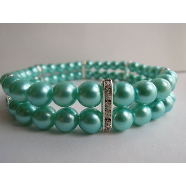 - Classy pet necklace made of 2 rows of handmade high quality imitation pearls and 25 rhinestones