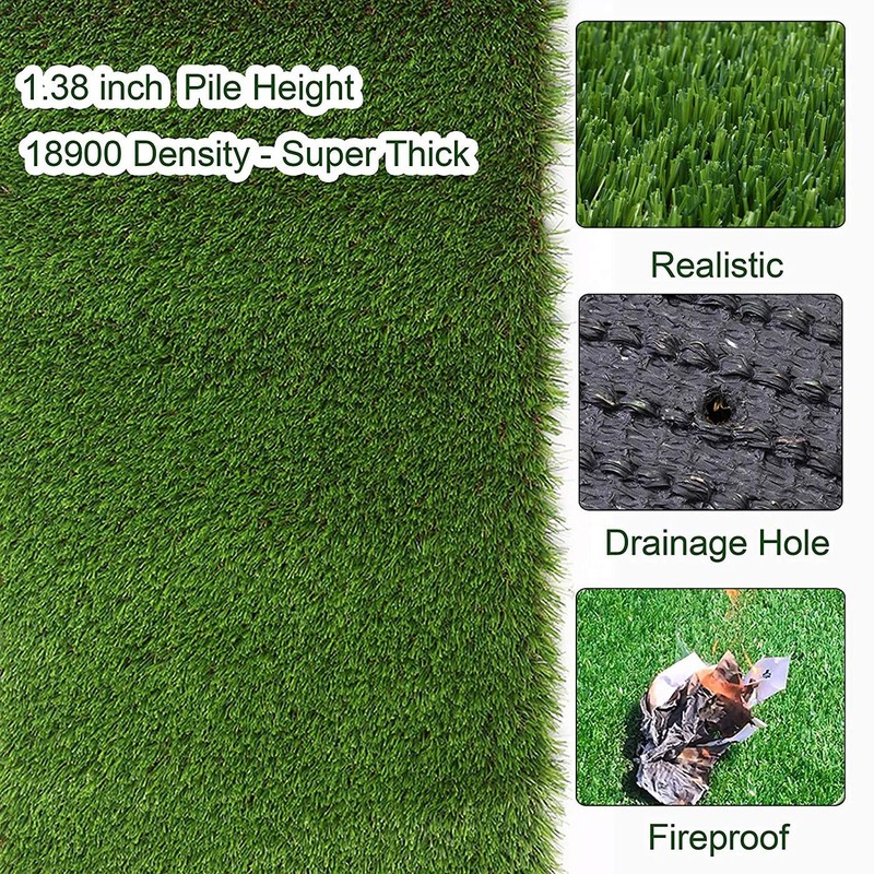 - THICK & REALISTIC ARTIFICAL GRASS RUG: Grass height about 1.37” in length, 70 oz total weight per square yard, high-density artificial grass. With 4-tone color, soft and lush and the thatch looks & feels like real grass. Providing you with year round green and turf enjoyment, perfect for all indoor and outdoor projects.