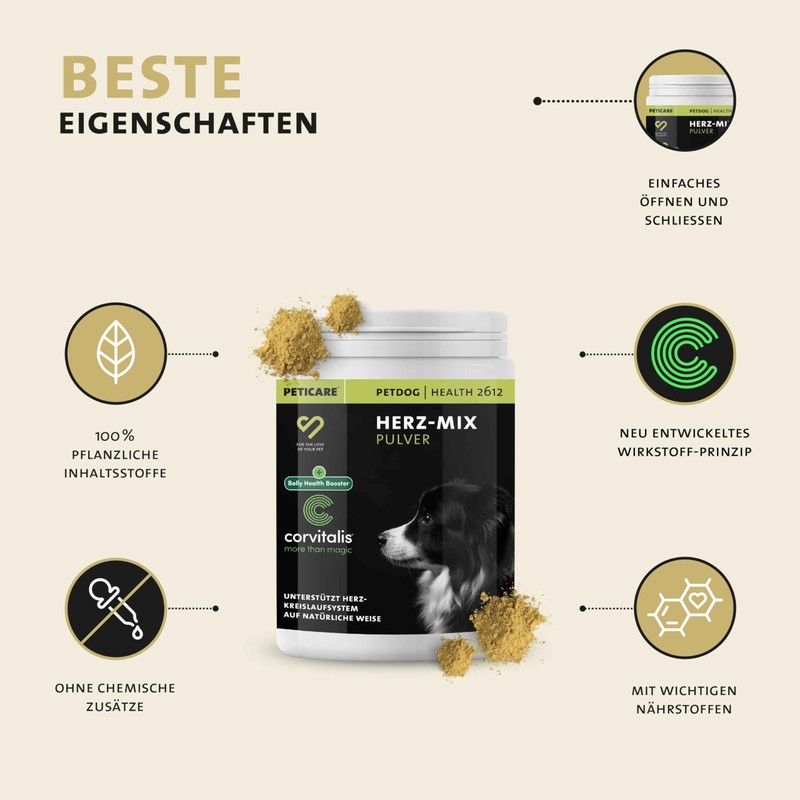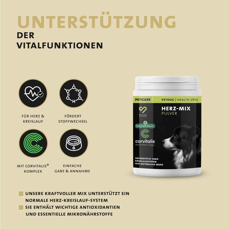 Peticare Herz & Kreislauf Pulver für Hunde | Unterstützt Herzgesundheit & Vitalität | Mit Omega-3, L-Carnitin & Weißdorn | Natürliches Ergänzungsfutter | petDog Health 2612