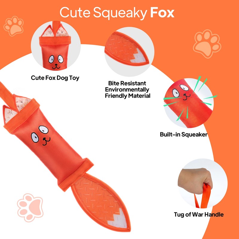 - 【Tug of War Dog Toys with Handle】Unique material of fox's tail makes it be tough dog toys for aggressive chewers.Interactive dog chew toys with handle is comfortable and easy to grip, full control and stability.This is great interactive, reward, training and exercise toy, suitable for indoor or outdoor play—tug for war, ring sport, agility, creating prey drive or other more