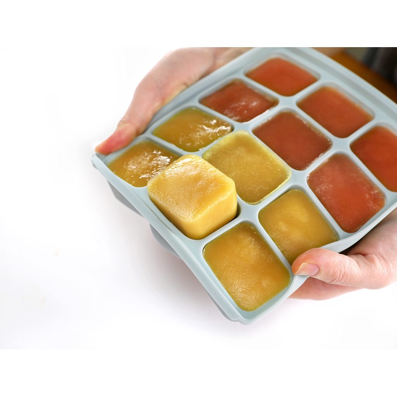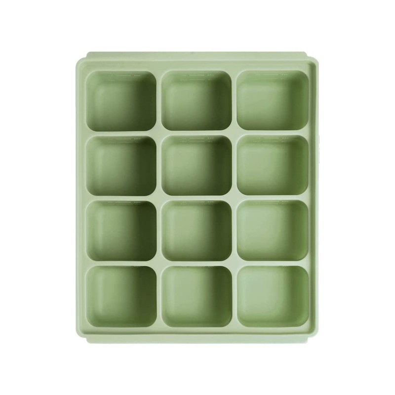 PETINUBE Silicone Freezer Tray, Baby Food Storage Cubes with Clip-On Lid, Freeze Baby Food, Soups, Purees, Ice, Easy and Safe Design, Made in Korea (12, Celadon Green)