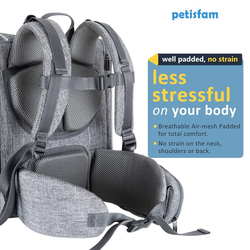 - Easy to Wear. Magic straps that pull the load closer to your body to help distributes pet's weight properly on your body, makes you feel almost weightless even after 1 hour walking