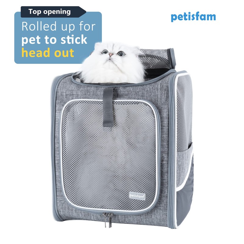 petisfam Ergonomic Design Pet Backpack Carrier for Medium Cats and Small Dogs. Better stability and Less Turbulence, Well Padded, 4 Pockets, Breathable, Easy Storage
