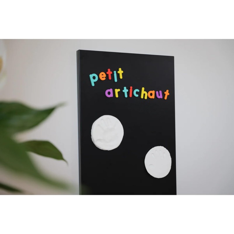 Petit Artichaut 2 Magnetic Baby Keepsakes Kit – Hand/Footprint Imprints for Decorative Magnets – Includes 2 Magnets, Hypoallergenic Clay, Roller & Instructions