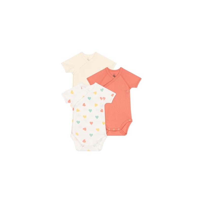 Petit Bateau Baby A0DJO Short Sleeve Birth Bodysuits, Variant 1, 0 Months (Pack of 3)