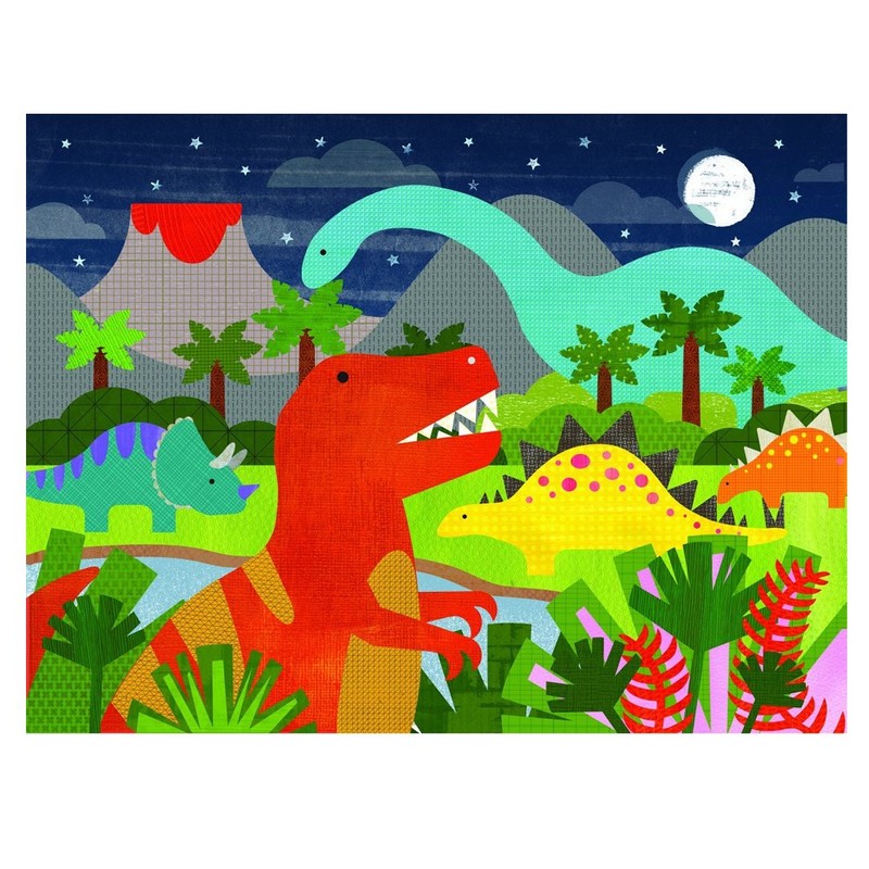 Petit Collage Floor Puzzle Dinosaur Kingdom 24 Pieces | Large Puzzle for Kids | Completed Dinosaur Puzzle Measures 18” x 24” | Makes a Great Gift Idea for Ages 3+