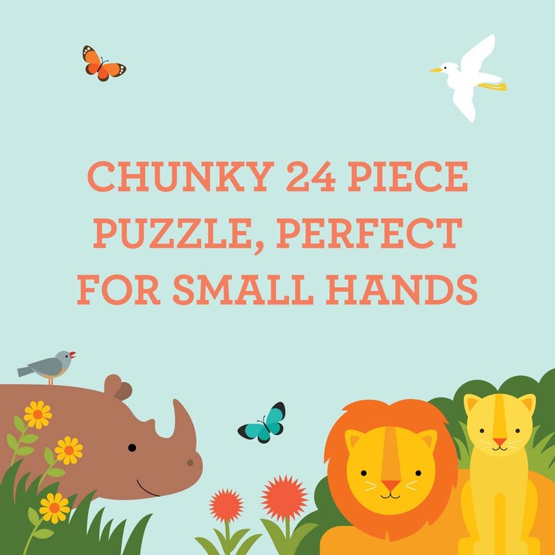 - STURDY STORAGE BOX – The safari kid's puzzle is packaged in a keepsake carrying box with a soft cotton rope handle that’s easy for little hands to carry. Plus, this 24-piece puzzle is ready to gift for birthdays, holidays, or just because!