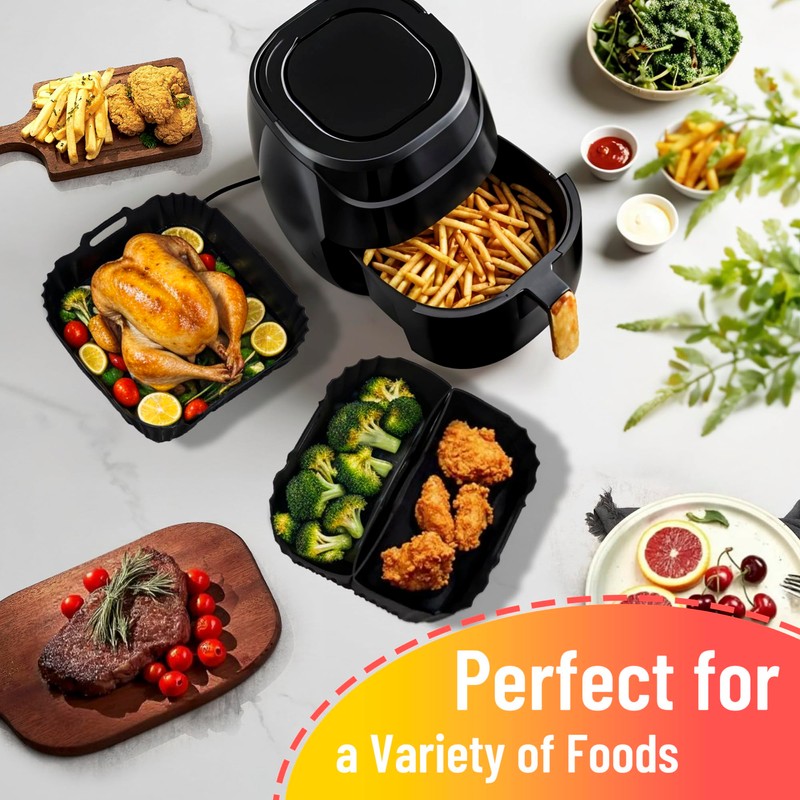 - 【Breite Kompatibilität】-Unser air fryer Zubehör für Silikoneinlagen ist nicht nur mit air fryer kompatibel, diese Silikoneinlagen funktionieren auch in Mikrowellen, Dampfgarern und Backöfen und erfüllen verschiedene Kochanforderungen.
