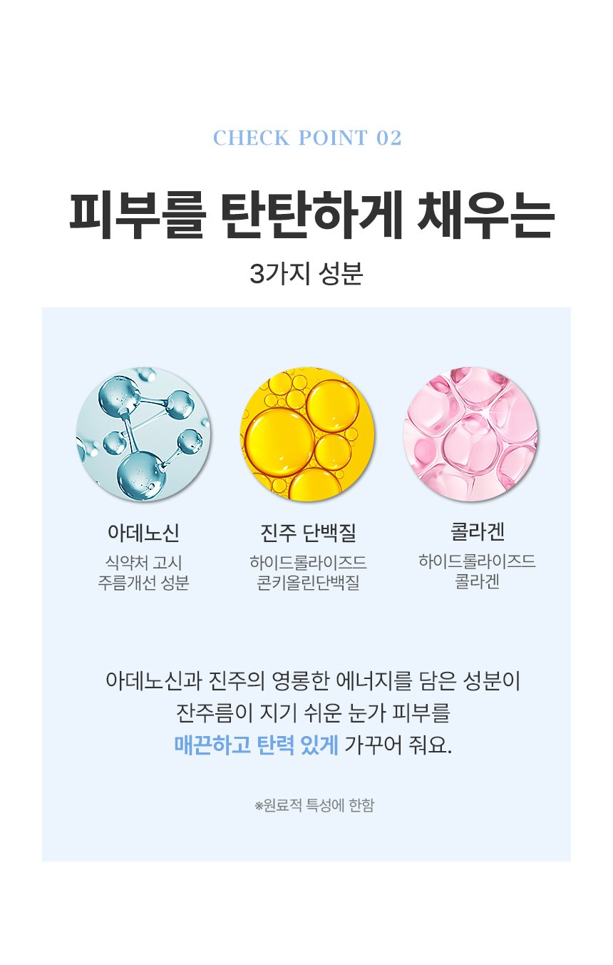 - all ingredients required by the Cosmetics Act to be listed: Purified water, Glycerin, Dipropylene Glycol, Niacinamide, Carob Gum, 1,2-Hexanediol, Irish Moss Powder, Irish Moss Extract, Hydroxyacetophenone, Propanediol, Cellulose Gum, Algin, Caprylyl Glycol, Potassium Chloride, Synthetic Fluorophlogopite, Butylene Glycol, Sodium Polyacrylate, Ethylhexylglycerin, Polysorbate 20, Hydrolyzed Collagen, Sucrose, Adenosine, Titanium Dioxide, Maltodextrin, Tocopheryl Acetate, Respedeza Capitata Leaf/Stem Extract, Pearl Extract, Kelp Extract, Dipotassium Glycyrrhizate, Ascorbic Acid, Aloe Vera Leaf Extract, Pearl Powder, Yam Root Extract, Violet Flower Extract, Ulmus Davidiana Root Extract, Opal Powder, Tin Oxide, Hydrolyzed Conchiolin Protein, Glutathione, Disodium EDTA, Fragrance