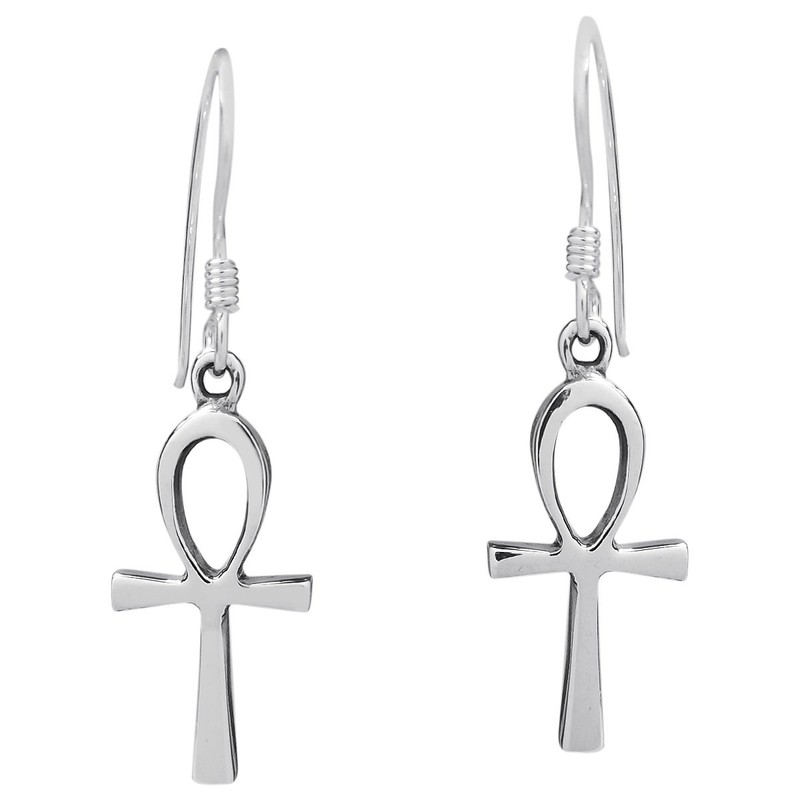 Petite Ankh Egyptian Cross .925 Sterling Silver Earrings