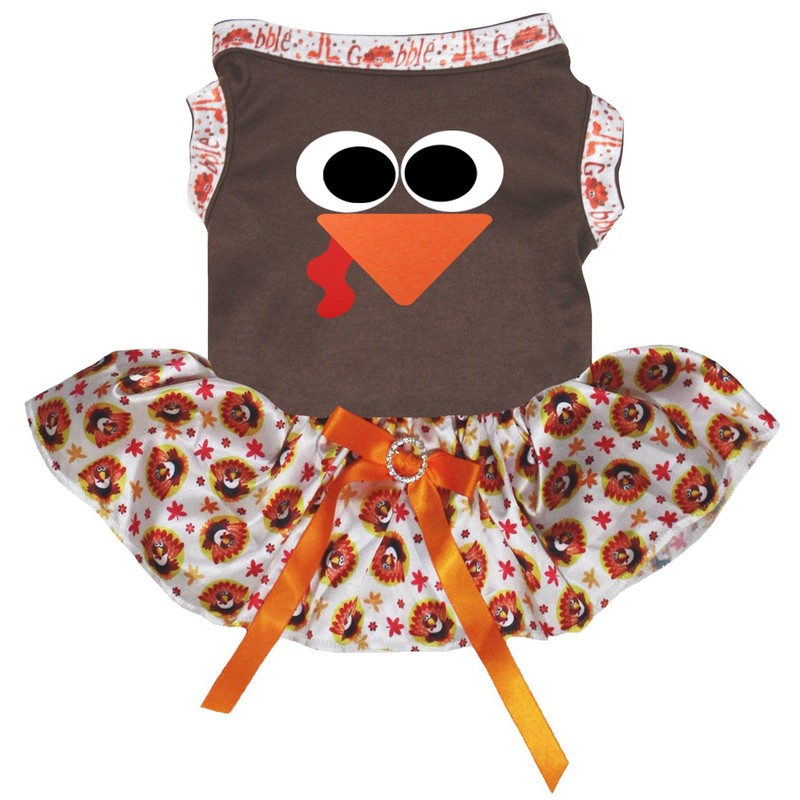 Petitebelle Turkey Face Puppy Dog Dress (Brown/Turkeys, Medium)