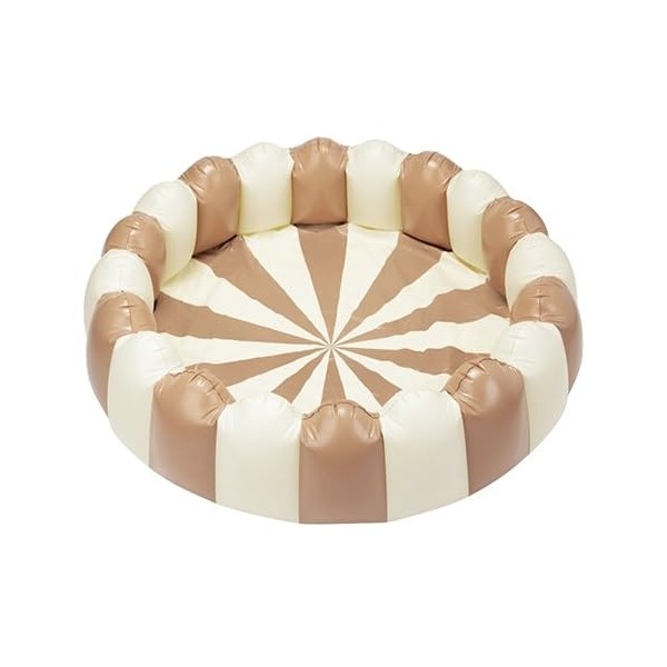 Petites-Pommes Striped Kiddie Pool Inflatable for Toddlers & Kids - Handprinted Classic Foldable Swimming Pool - Durable, BPA-Free PVC Kids Pools with Repair Patch & Storage Bag, Beige, 63 x 18 Inch