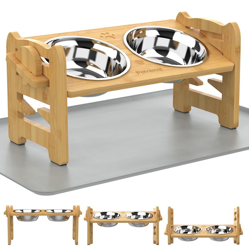 Petnimal Elevated Dog Bowls, Adjustable Raised Dog Bowls Stand for Small Size Dogs and Cats, Durable Dog Feeder with 2 Stainless Steel Bowls and Non-Slip Feet, Dog Food Bowls with Silicone Mat