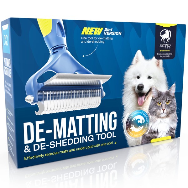 PETPROVED Dog Brushes for Shedding Dog Grooming Brush 2in1 Undercoat Rake Deshedding Tool for Dogs Cats Dematting Comb for Dogs Cats De Shedding Brush for Dogs Pet Grooming Brush,