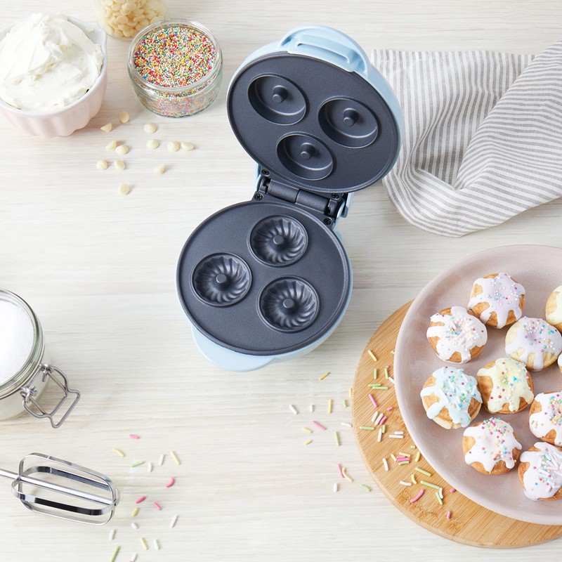 Petra PT4693BLNVDE Mini Bund Kuchenautomat - Nicht haftender Elektrischer Kuchenbäcker, 12.5 cm Platte, 2 Minuten Vorheizen, Einfache Reinigen, Backen Sie Bis Zu 3 Kuchen Auf Einma, 550W, Pastellblau