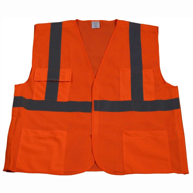 Petra Roc OVM2-5PB-L/XL ANSI Class 2 5-Point Break Away Velcro Closure 4 Pockets Safety Vest, Large/X-Large, Orange Mesh