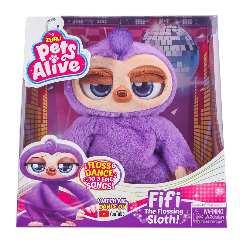 This Sloth loves to floss! There has never been a cooler pet than Fifi the Flossing Sloth from ZURU Pets Alive who flosses to 3 epic songs. Her flosslike movements mimic one of the most iconic dances of the decade! Fifi's hillarious floss movements, cute blinking eyes and butt wiggle are sure to get everyone up dancing and laughing! Whose got the best moves? You or Fifi?