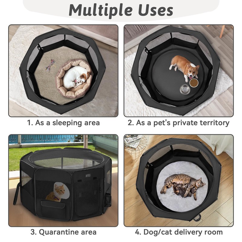 - Various Settings: This durable pet playpen for cats is ideal for indoor use, puppy training, outdoor gatherings, camping, vet visits, pet-friendly events, home renovations, and travel stops, ensuring a secure space for your pets to stay safe in any situation