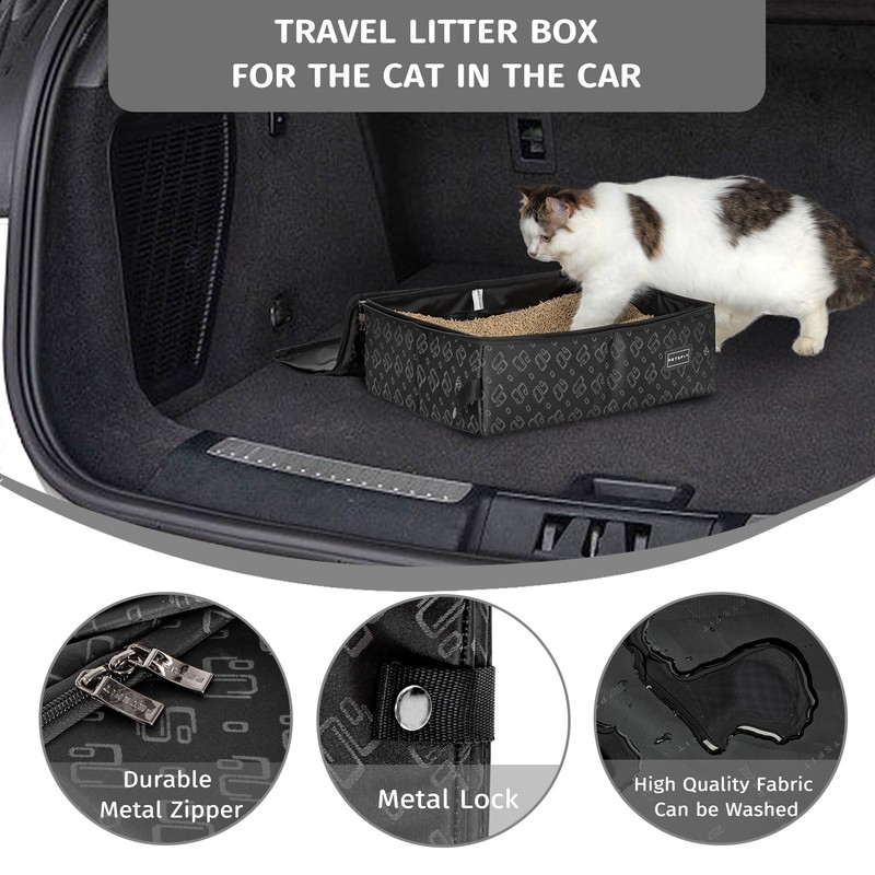 - Waterproof &Leakproof: Designed with seamless metal zippers and a waterproof lining, this covered cat litter box for cats in the car ensures excellent leakproof performance. The smooth surface makes it easy to clean without any odor. The soft material provides maximum comfort for your pet, and its appropriate height prevents litter from splashing out.