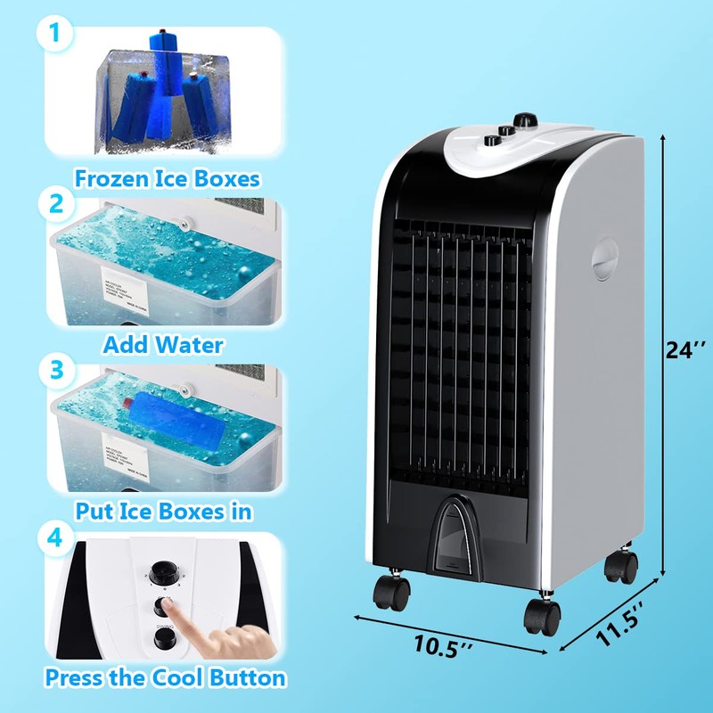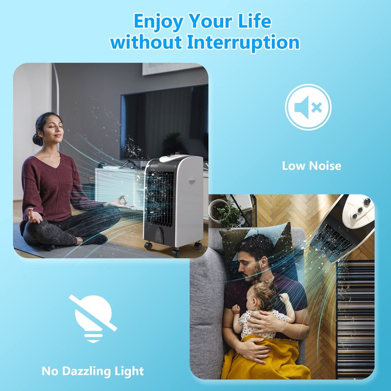 - 3-in-1 Multifunctional Air Cooler: Without adding water, you can use this unit as a fan. This air cooler can also be used as a humidifier if you just add water. And the wind will be cooler if you add water and ice packs. Combining 3 functions in 1, this multi-functional air cooler is able to bring you comfort all year round.