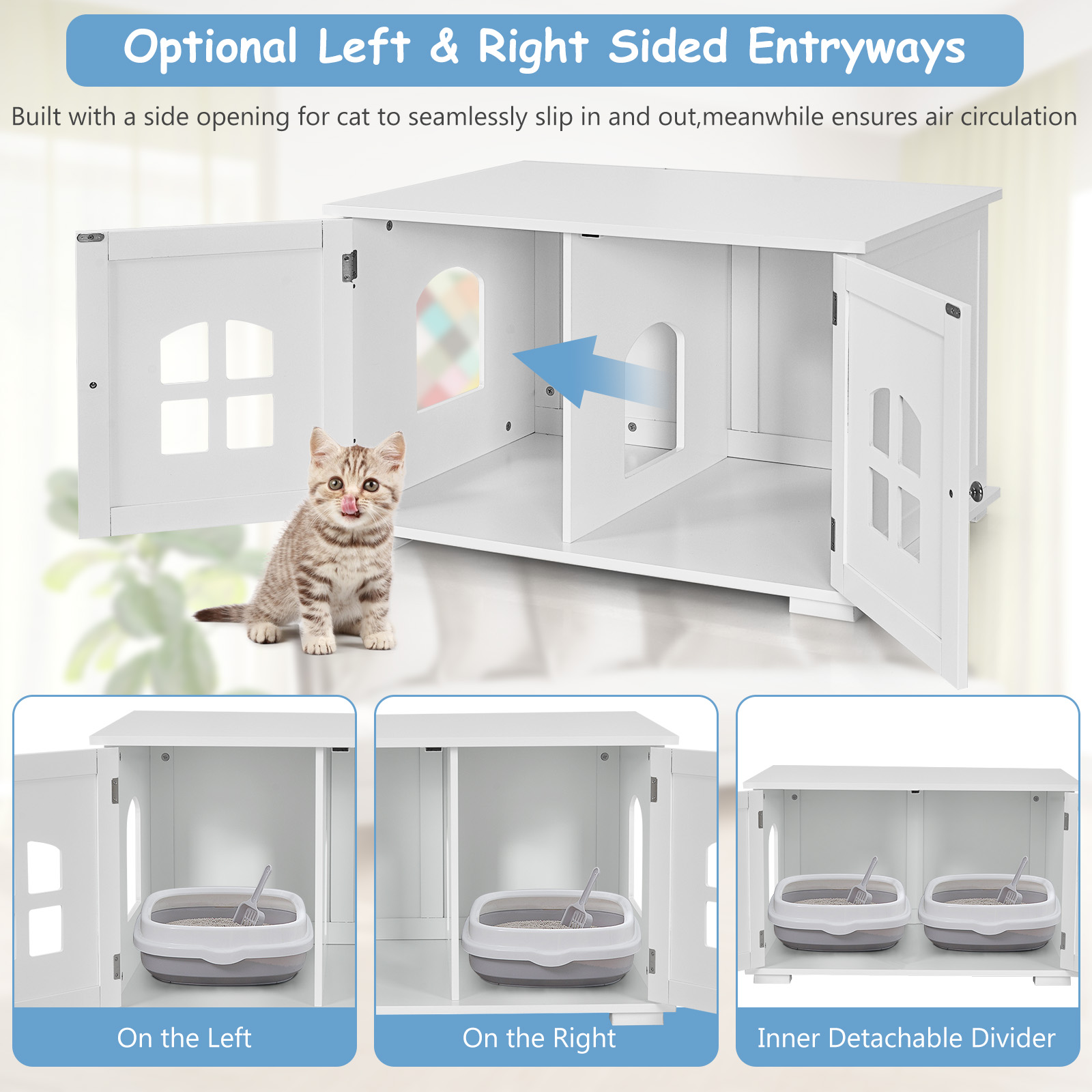 Petsjoy Large Wooden Cat Litter Box Enclosure Hidden Cat Washroom w/ Divider