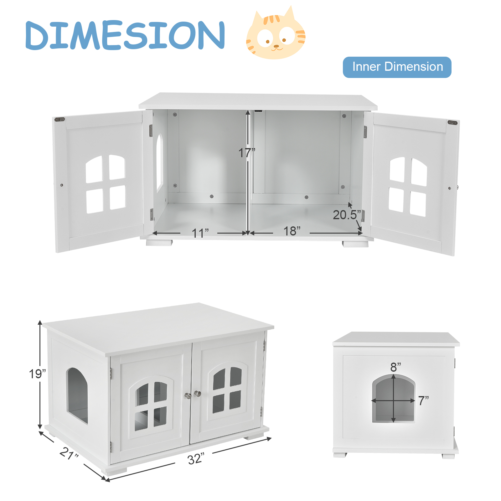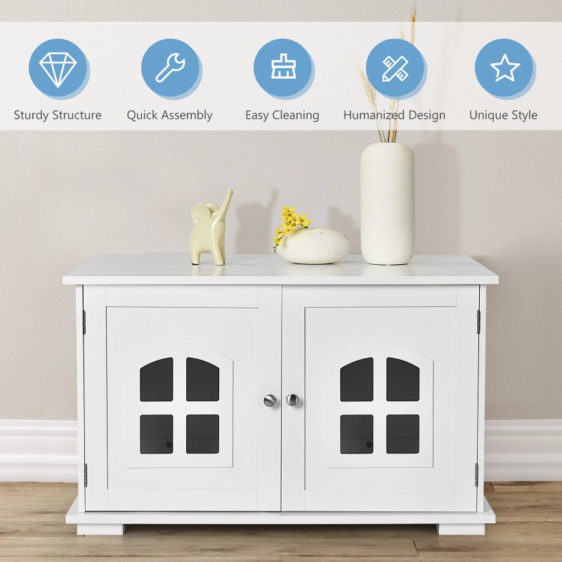 With the side access door and 2 windows on the door, the litter box is well ventilated to avoid smelling. Features an interior panel that prevents litter from being kicked out and tracked onto the floor, the litter box chest is easy to clean and can always keep your home sanitary and odorless. The high-quality MDF structure and water-proof paint make this litter enclosure more and stronger. In addition, you can also take this cat house as a cabinet or a bedside table owing to its large storage space and handsome appearance.
