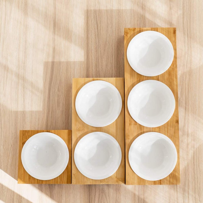 Petsoigné 2Pcs Replaceable Ceramics Bowls for Basic Cat Bowls Bamboo (2Pcs Bowls, Ceramics)