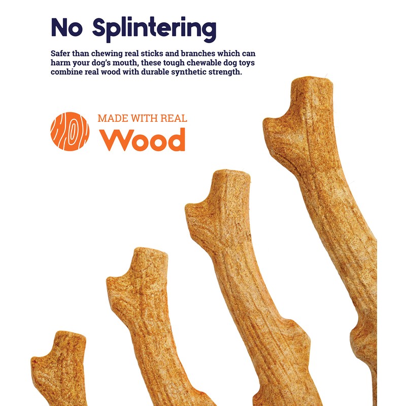 - NO SPLINTERING: Safer than chewing real sticks and branches which can harm your dog’s mouth, these tough chewable dog toys combine real wood with durable synthetic strength.