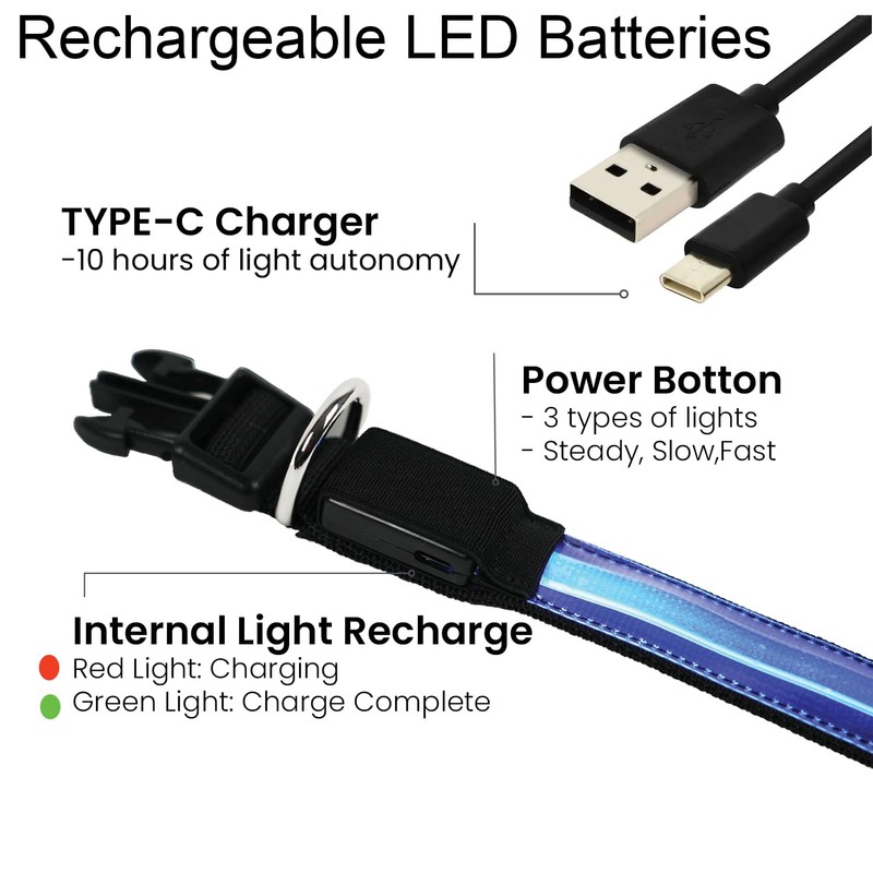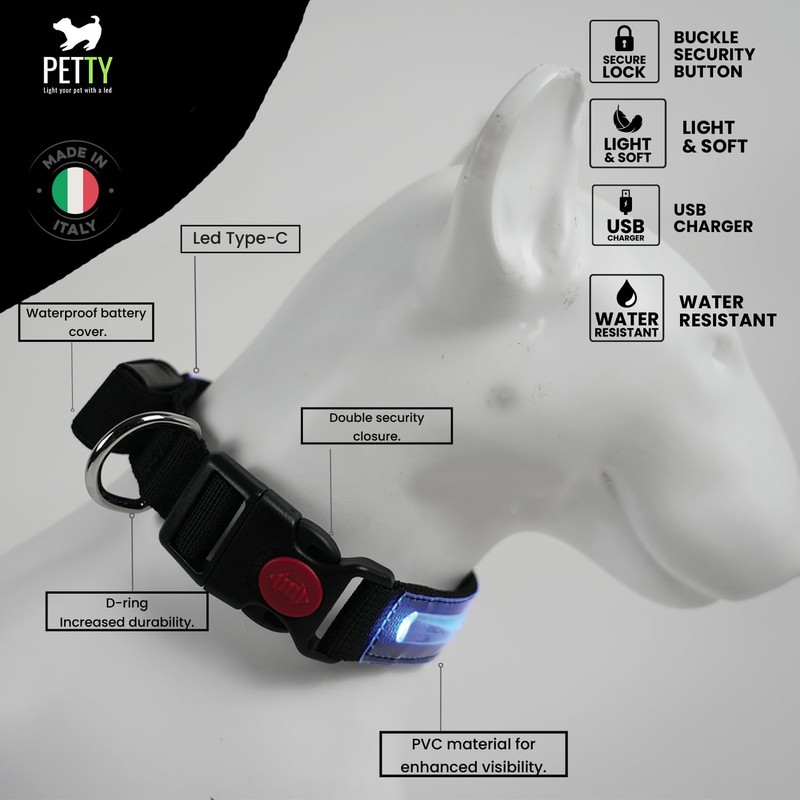 - ✔️ Extraordinary Brightness for Maximum Safety: The PETTY LED collar provides excellent visibility for your dog, thanks to its powerful LED placed in a transparent PVC pocket. Keep your dog safe at all times, even during nighttime walks.