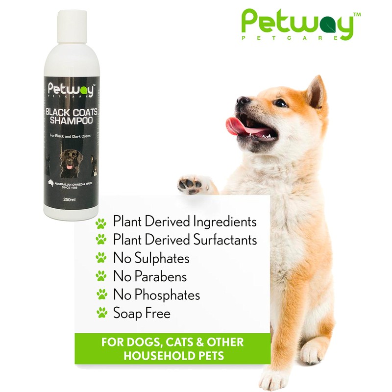 - NO HARSH CHEMICALS: Petway Petcare never uses chemicals such as Sulphates, Paraben, enzymes or Phosphate in its pet coat shampoo for black and dark coats. The soap free plant extract based formulation gives a rich, supple finish to pet grooming routine.