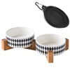 Petygooing Ceramic Dog Bowl Set with Stand,Cat Dog Food and Water Bowl,Small Dog Bowls Anti -Slip Set of 2 Cat Dog Bowls-Dog Food Bowls- Dog Bowls Small Medium Size Dog (28OZ/6.1 in) Black Rhombus