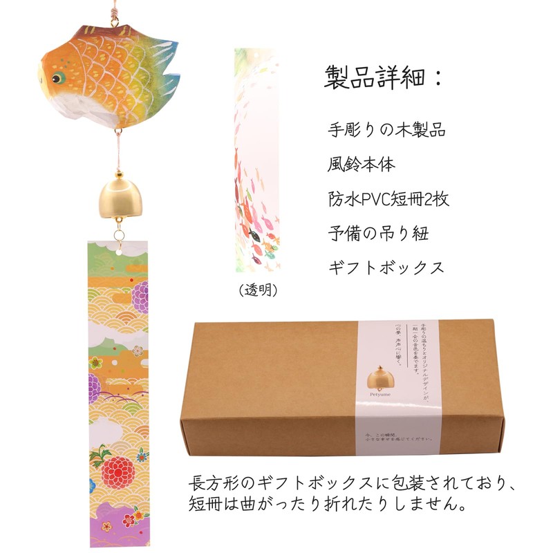Petyume Wind Chime, Handmade Wind Chime, Entryway, Unbreakable, Healing Sound, Clear Sound, Stylish, Cute, Colorful, Window and Roof Decoration, Gift (Goldfish)