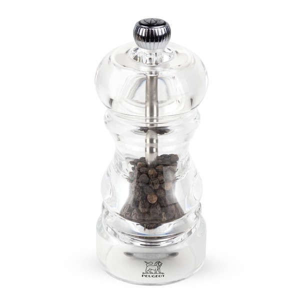 PEUGEOT(プジョー) ミル 胡椒 ペッパーミル 透明 アクリル製 粗さ調節 容量23g・12cm 手動 フランス製 ナンシー 900812