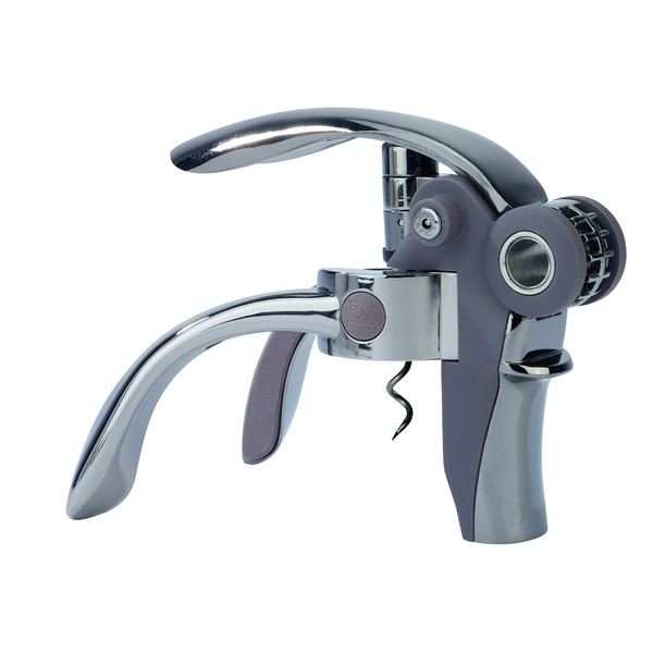 - WELL-BUILT — A bold and contemporary design, the lever-style corkscrew is made with solid metal with a refined gunmetal finish. The handles are highly ergonomic and offer a soft touch and comfortable grip. It is presented in a beautiful case — a perfect gift
