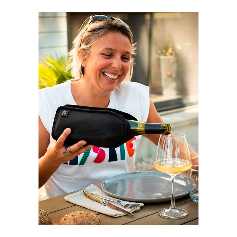 PEUGEOT - Gift Set Bubbles - Frizz Grey Cooling Cuff + Line Carbon Champagne Stopper - Perfectly Chilled in 20 Minutes - Airtight Sealing & Storing Open Bottles Made Easy