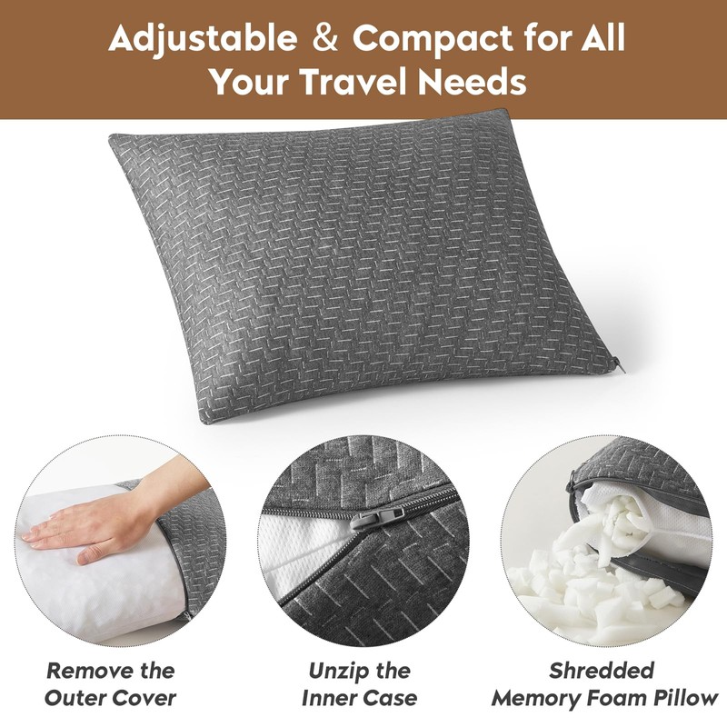 - 【Soft and Comfortable】Crafted with high-quality shredded memory foam encased in a soft cover made of 100% premium microfiber. Compared to cotton or inflatable pillows, our memory foam pillow conforms better to the body's curves, offering optimal support and relieving body pressure for a superior sleep experience on the go