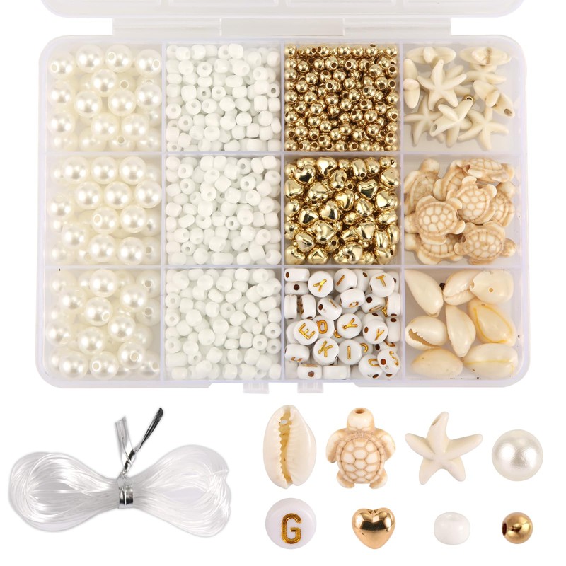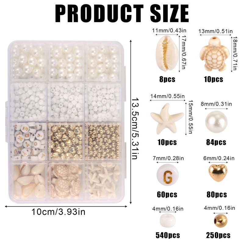 - Product Content: You will receive the beach bracelet making kit, including conch, turtle, letter, heart-shaped white and gold beads and crystal wire, about 1000 pieces. The quantity is enough to meet your bracelet making.