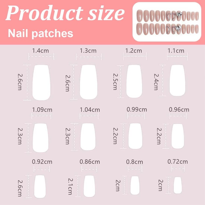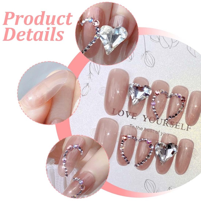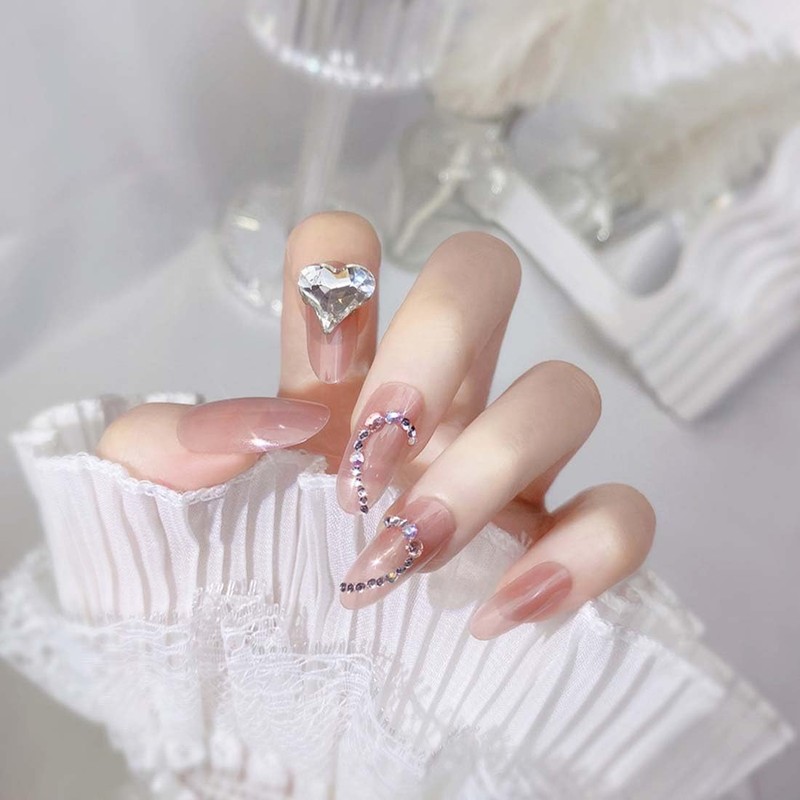 PEXIVOZ 24 Stück Fake Nails mit Glitzernden Herzförmigen Strasssteinen,Lang,künstliche Nägel,aus Acryl,Einfach Wiederzuverwenden,Press On Nails,mit Kleber/Nagelkleber,für Damen und Mädchen
