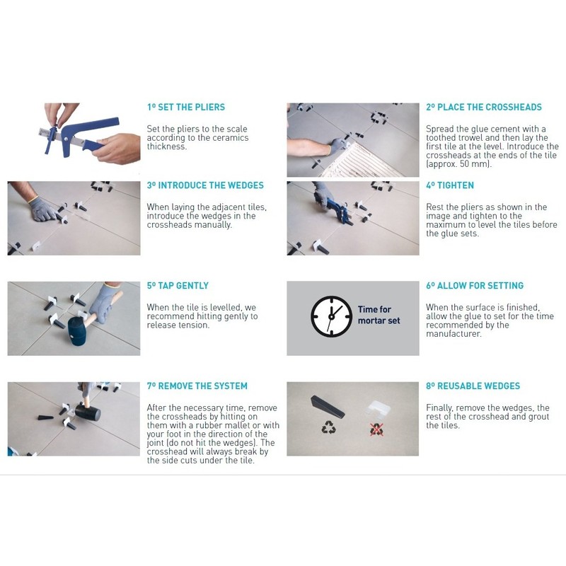 - The system ensures flatness between tiles avoiding movements during the mortar setting