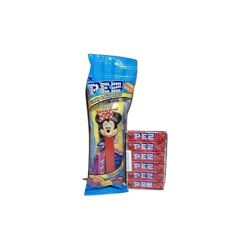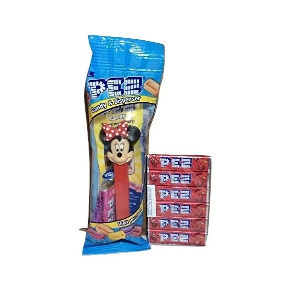 • From the Pez Mickey Mouse & Friends Pez Collection, Minnie Mouse Pez Dispenser in Cello Bag with 2 Rolls of Candy + 6 Roll Pack Cherry Flavored Candy Refills Bundle