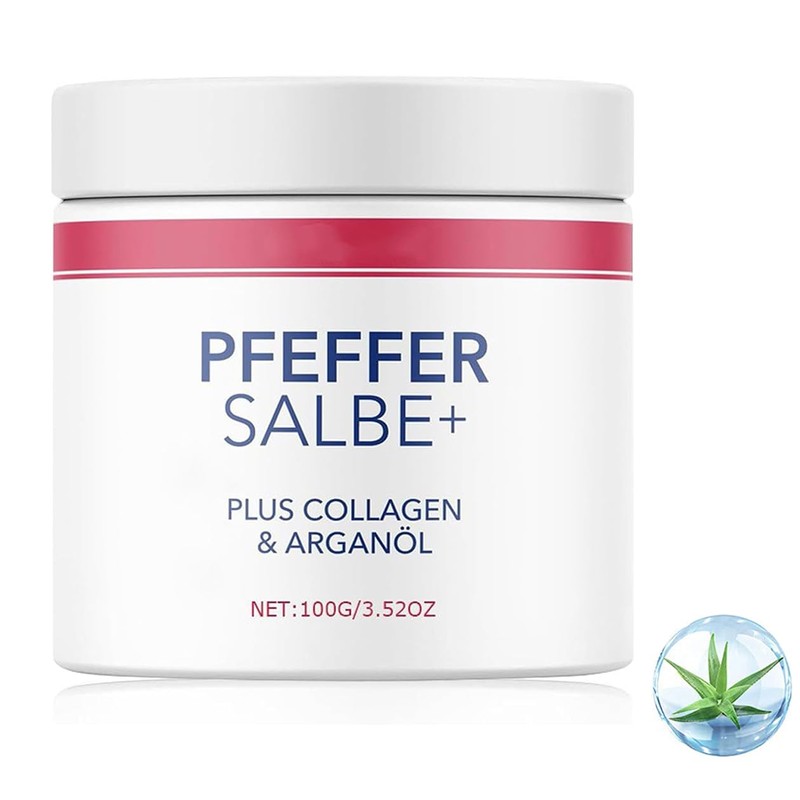 Pfeffersalbe Plus, Pfeffersalbe zum Bräunen, Hautreparatur Pfeffer Salbe, Aktiv Pfeffersalbe, Reichhaltige Salbe mit Plus Collagen & Arganöl 100g