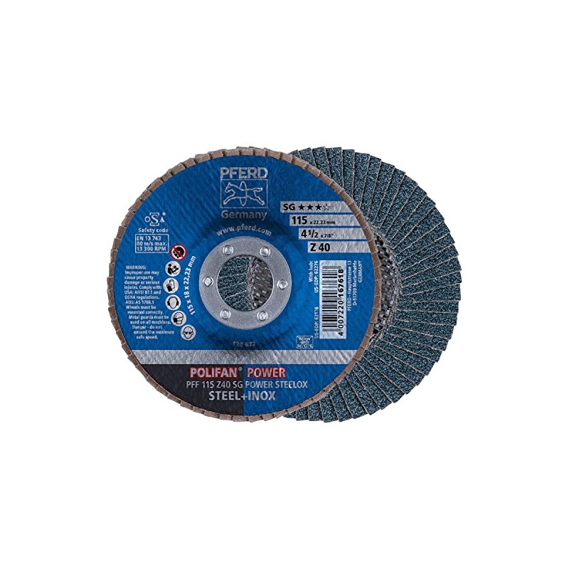 PFERD 62176 4-1/2" x 7/8" POLIFAN Flap Disc - Flat SG, Zirconia, 40 Grit (10 Pack)