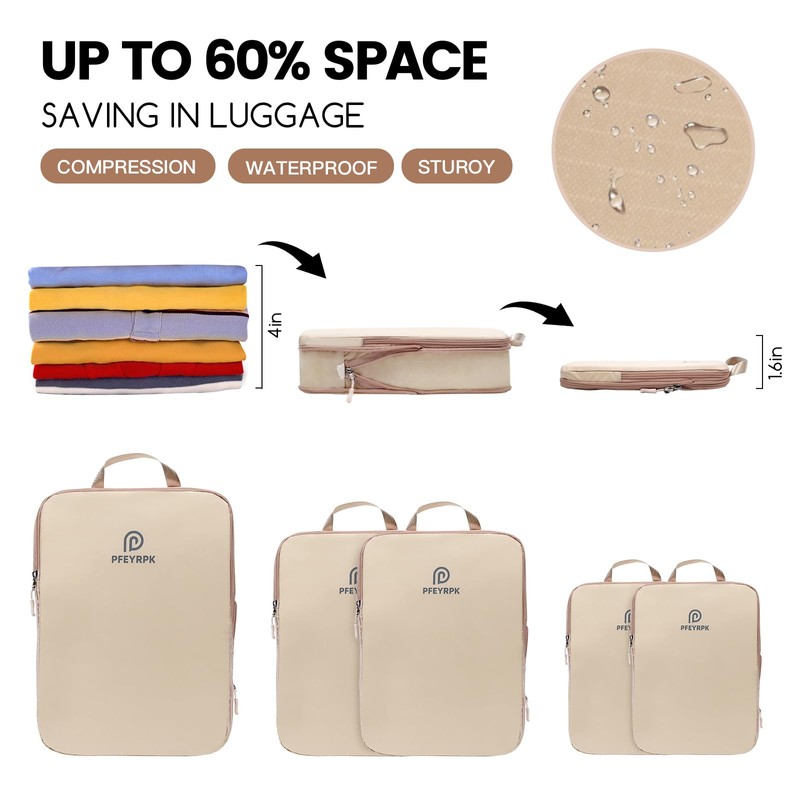 PFEYRPK Compression Packing Cubes for Suitcases,7 Set Travel Packing Cubes for travel,Expandable Organizers Bag Set & Travel Cubes for Luggage,Lightweight Durable Packing Organizers Khaki.