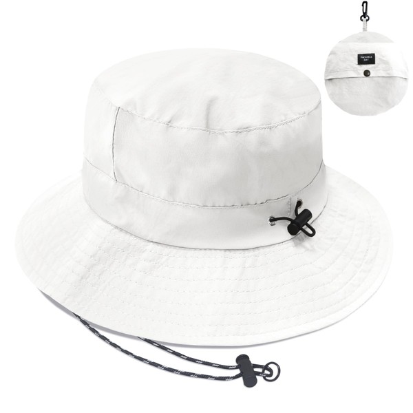 PFFY Bucket Hat for Women Men with Chin Strap Waterproof Packable Quick Dry UV Protection Sun Hats Plain White