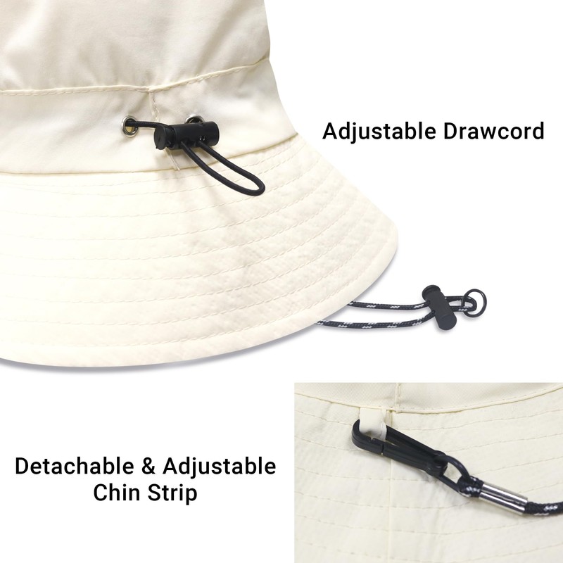 Adjustable To Fit Most: This waterproof sun hat includes an adjustable elastic drawstring at the back for a comfortable fit. An adjustable chin cord keeps the hat secure even in windy or rainy conditions